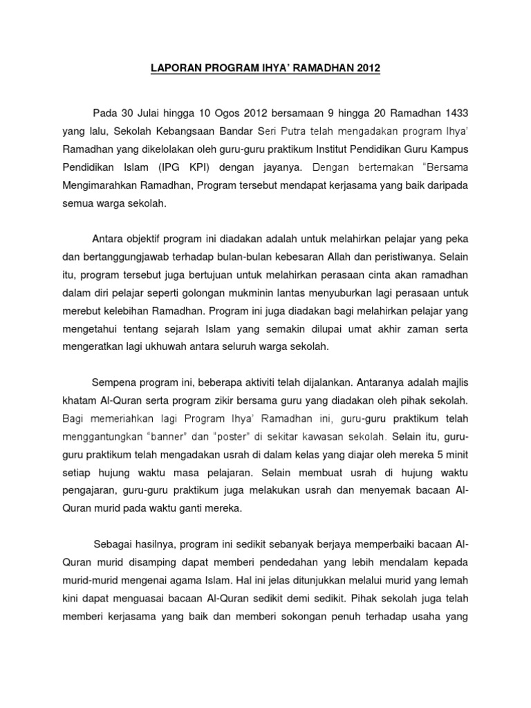Esok Ramadhan sudah bermula. SMK SERI PANTAI KUALA LUMPUR KERTAS KERJA IHYA RAMADHAN 1440H PERINGKAT SEKOLAH SMK SERI. Memang di bulan puasa ini Allah membuka lebar-lebar pintu dimana kita bisa membersihkan dosa dan kesalahan yang telah dilakukan dan untuk melewatinya kita harus melakukan puasa Ramadhan sebulan penuh dengan landasan iman dan ikhlas.