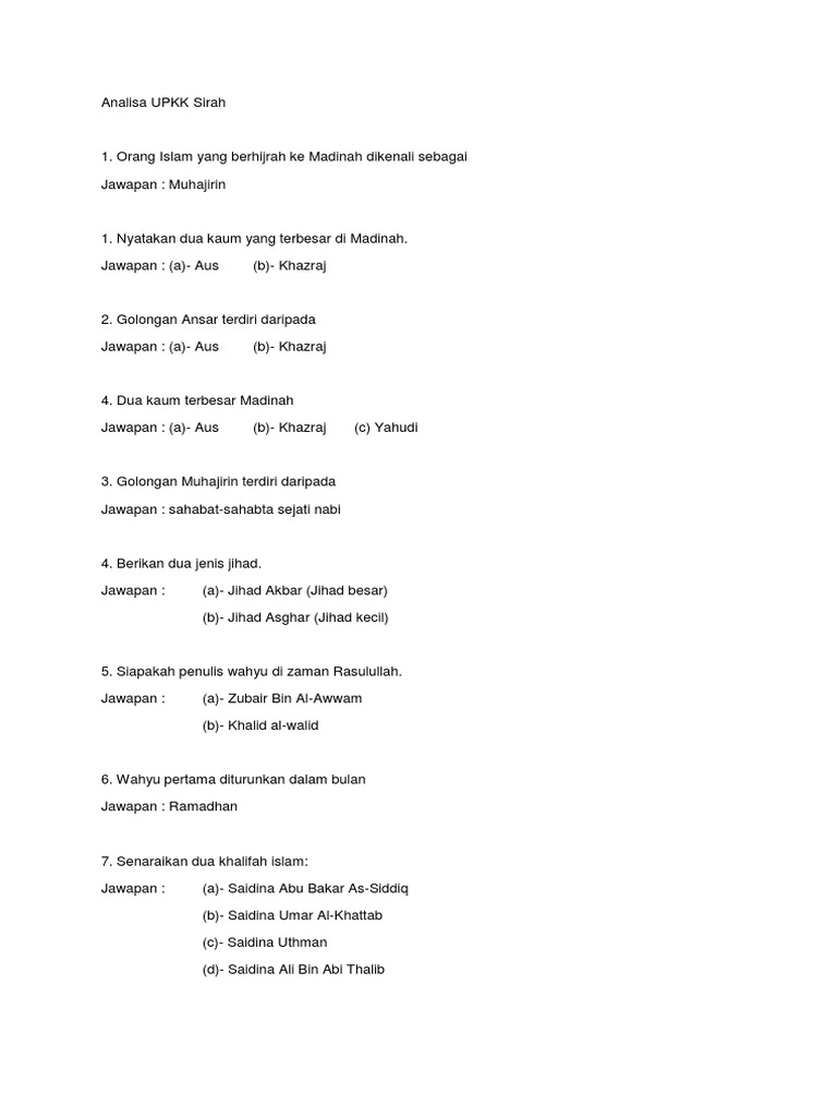 Sirah Docx Analisa Upkk Sirah 1 Orang Islam Yang Berhijrah Ke Madinah Dikenali Sebagai Jawapan Muhajirin 1 Nyatakan Dua Kaum Yang Terbesar Course Hero